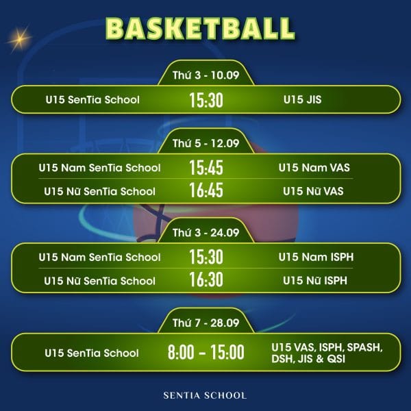 Trong tháng 9 này, các “chiến binh” SenTia hứa hẹn sẽ mang đến những trận đấu sôi nổi và gay cấn ở ba môn thi chính: bóng đá, bóng rổ và bóng chuyền. Đây là cơ hội tuyệt vời để các SenTians thể hiện tài năng thể thao của mình, đồng thời xây dựng một môi trường an toàn và đề cao tinh thần “fair play,” nâng cao ý thức rèn luyện thể chất.