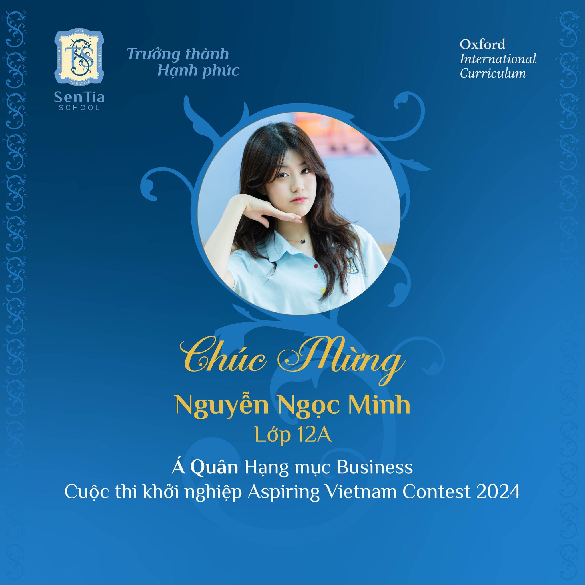 Sau hành trình 3 tháng tham gia cuộc thi khởi nghiệp Aspiring Vietnam Contest 2024, bạn Nguyễn Ngọc Minh (12A) đã thành công về đích với danh hiệu Á Quân của hạng mục Business (Kinh doanh). Với nỗ lực nghiên cứu, tìm tòi, cùng kỹ năng thuyết trình tự tin và ý tưởng độc đáo, Ngọc Minh đã vượt qua hàng nghìn đối thủ và để tại ấn tượng sâu sắc với Hội đồng Ban Giám Khảo của cuộc thi.