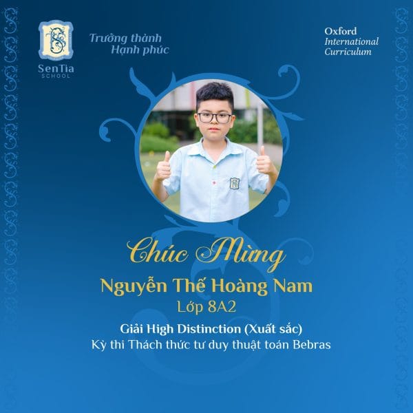 Nguyen The Hoang Nam (8A2) won the High Distinction award with a top 2 score in the whole grade.