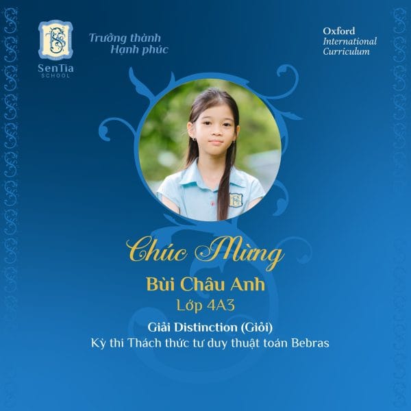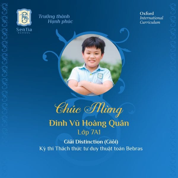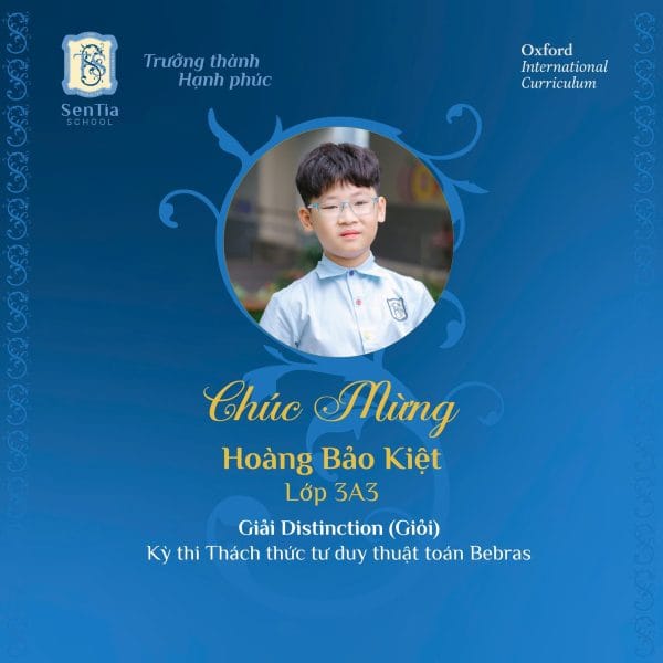 Hoang Bao Kiet (Class 3A3), Bui Chau Anh (Class 4A3), and Dinh Vu Hoang Quan (Class 7A1) won the Distinction award with a score in the top 3 of each grade.