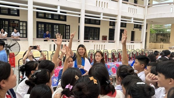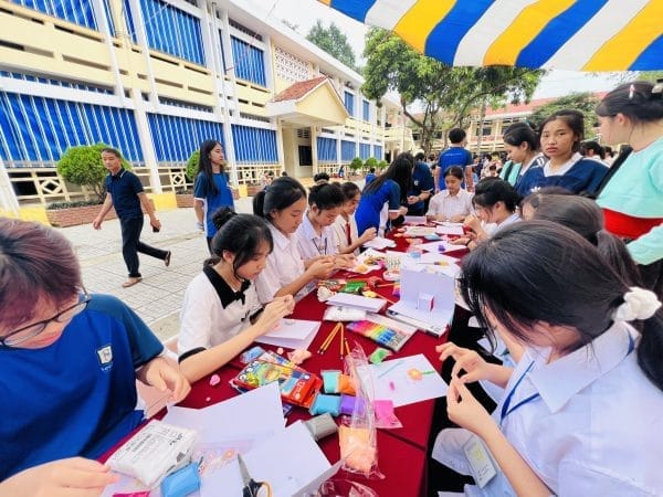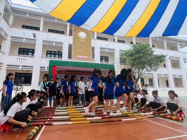 On Tuesday and Wednesday last week, grades 10 and 11 had interesting experiences in Thanh Hoa. That morning, we woke up early to prepare and leave. After 4 hours on the bus, I finally arrived at Thuong Xuan Boarding School for Ethnic Minorities, a middle school.