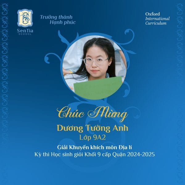 Congratulations to the four Grade 9 students from SenTia School who were recognized in the Excellent Student Competition for Culture and Science Subjects at the district level for the school year 2024-2025!