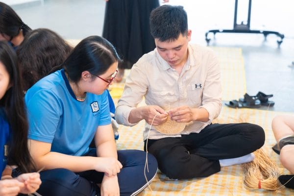 We had the chance to experience some interesting workshops. One of them was the “Bamboo and Rattan Weaving” workshop by artisan Nguyen Dinh Sang from the Phu Vinh Bamboo and Rattan Craft Village, organized in collaboration between the Nguyen Hue Specialized School’s Student Council and SenTia. This was a very special experience as we got to try our hands at a traditional craft passed down through generations, feeling the skill and patience required to create items from bamboo and rattan. Next was the “Soul Understanding” workshop, where we used cards with thought-provoking questions designed to help us dive deeper into our emotions and thoughts, like a journey of self-discovery.