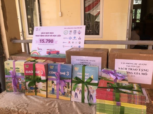 Trường SenTia đã phát động quyên góp, hỗ trợ và phân loại gần 1.500 quyển sách trong tổng số 15.000 sách giáo khoa và sách truyện, cùng với nhiều đồ dùng học tập và đồ chơi. Đây là hoạt động đã nhận được sự hưởng ứng nhiệt tình của cộng đồng SenTia. Tất cả các sách, đồ dùng học tập và đồ chơi quyên góp được đã được trao tận tay học sinh Trường Tiểu học và Trung học Gia Mô (Tân Lạc, Hòa Bình) trong Lễ Trao Quà và Sự Kiện Giao Lưu Văn Hóa Đọc, với sự tham gia của 316 học sinh tiểu học, 18 giáo viên, và 29 đại diện của các đơn vị đối tác và nhà tài trợ cho “Sách Bay” 2024.